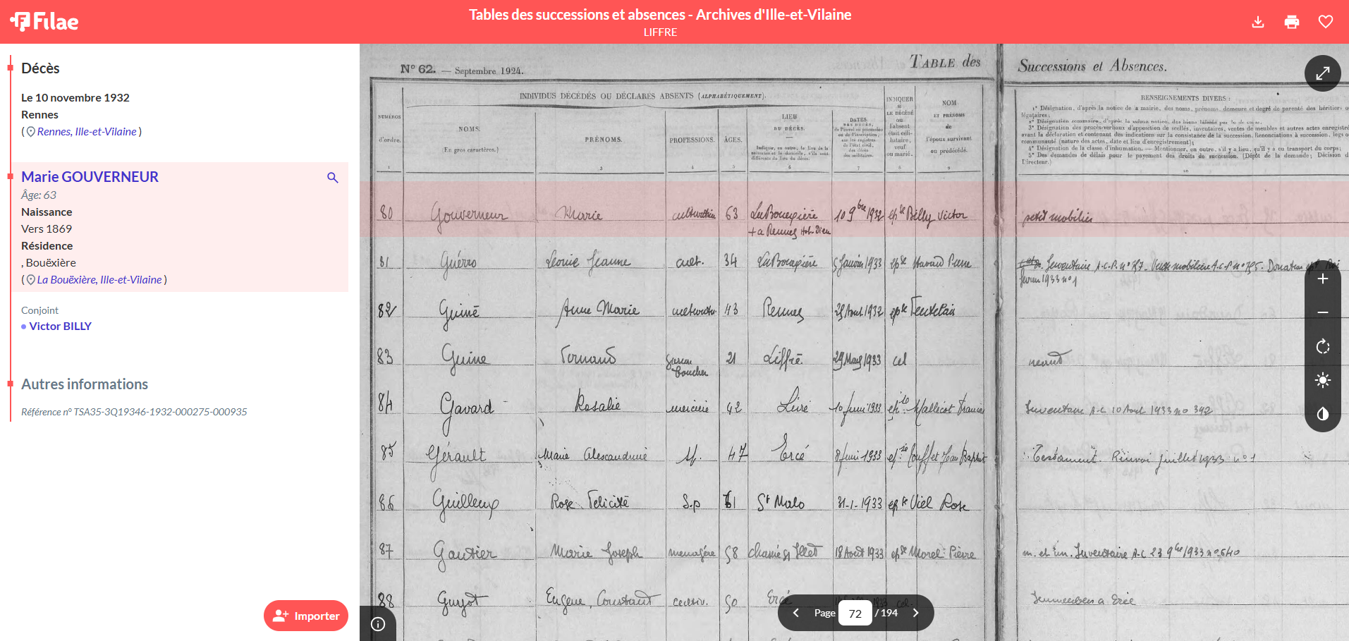L’Ille-et-Vilaine rejoint la liste croissante des départements déjà indexés. Pour savoir si vos autres départements de recherche sont déjà couverts par ce service, consultez la FAQ :Quelles tables de successions et absences sont disponibles sur Filae ?.