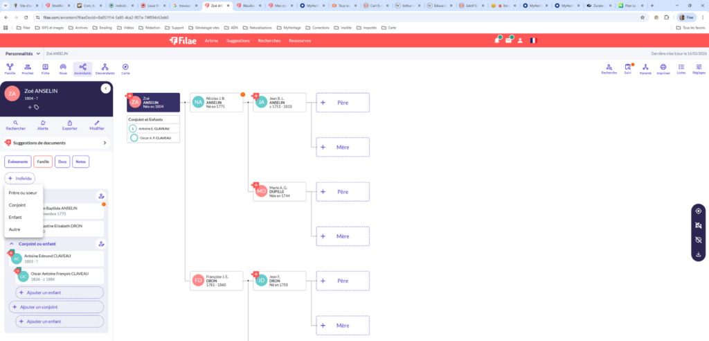 - Un nouveau bouton + Individu fait son apparition pour ajouter rapidement des personnes.
