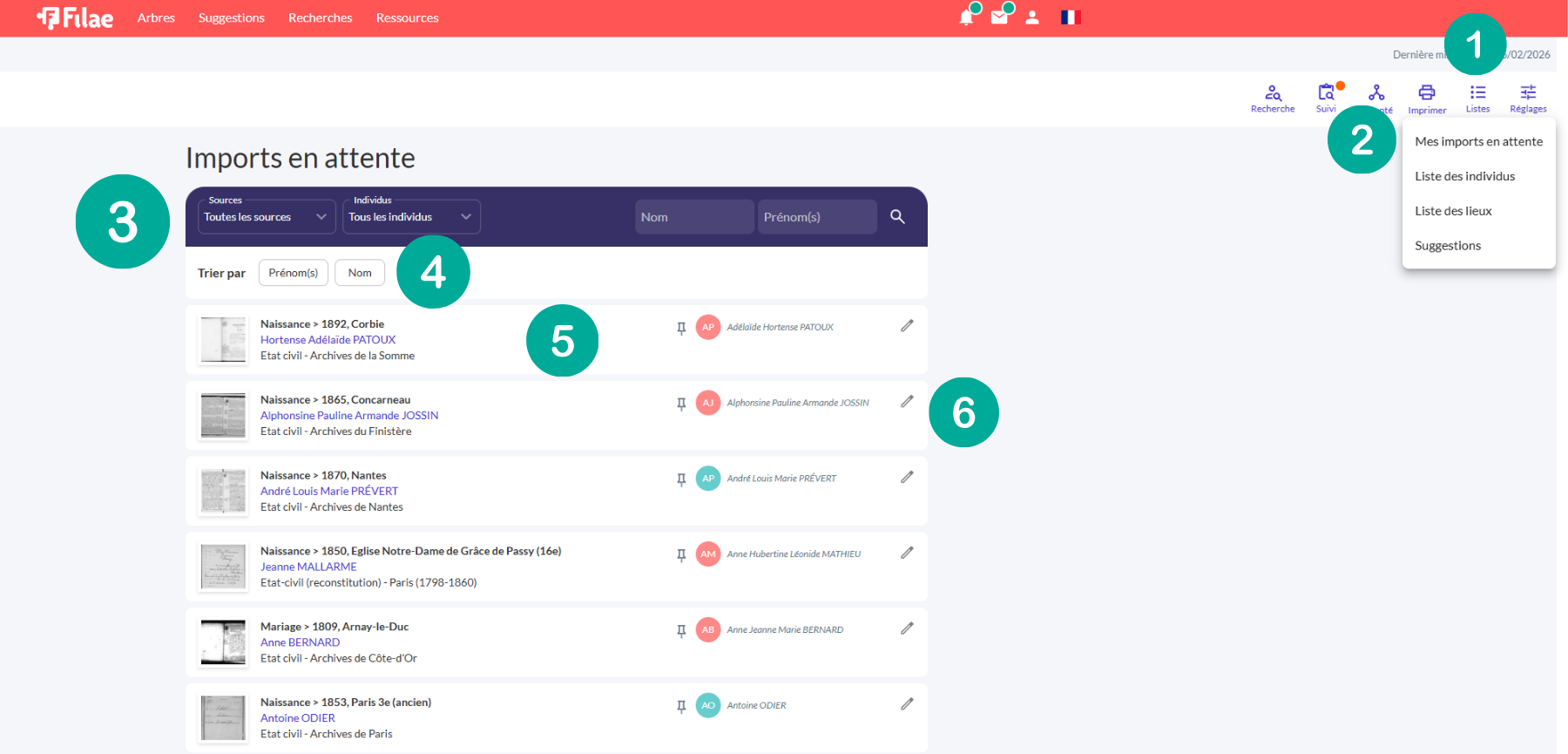 Découvrez les derniers changements apportés dans les arbres généalogies : liste des import en attente, saisie et consultation des sources !