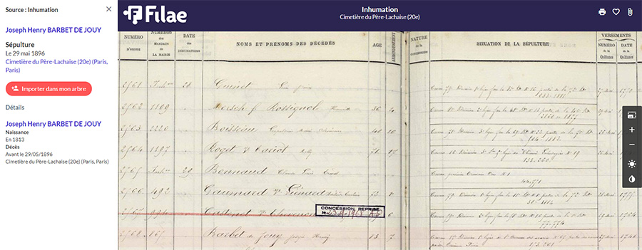 les registres journaliers d'inhumation des cimetières parisiens sont maintenant indexés de 1804 à 1968 permettant de retrouver la sépulture d'un individu inhumé dans un des cimetières de la ville de Paris. Consultez notre article sur ces registres d'inhumation