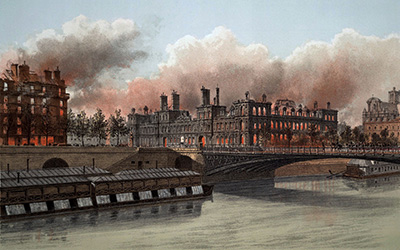 Le 18 mars 1871, les parisiens se soulèvent donnant naissance à la Commune de Paris. L'insurrection prend fin durant la semaine sanglante, particulièrement meurtrière, du 21 au 28 mai 1871. Le 23 mai, les grands incendies débutent. Le feu est mis volontairement le 24 mai à l'Hôtel de ville, à la Préfecture de police et au Palais de justice.