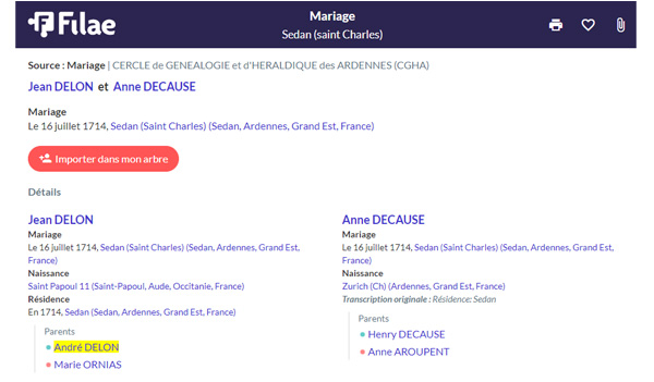 - Vous pouvez avoir en plus : les parents, le conjoint, les témoins, les professions, les résidences…