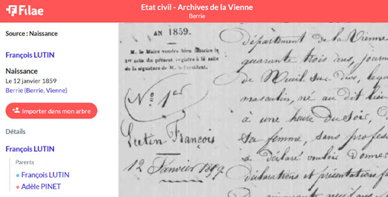Grâce à la recherche nominative, découvrez les naissances de vos ancêtres sur Filae.com :