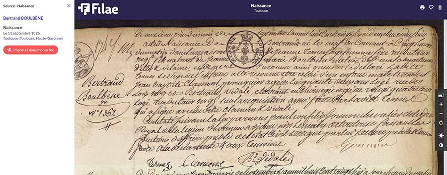 Il y a cette publication de mariage dans le Tarn en 1841 : Antoine Saissac et Jeanne Boulbene. Elle est dite de Toulouse, fille de Jean Boulbene canonnier retraité et de Marie Jeanne Pannier