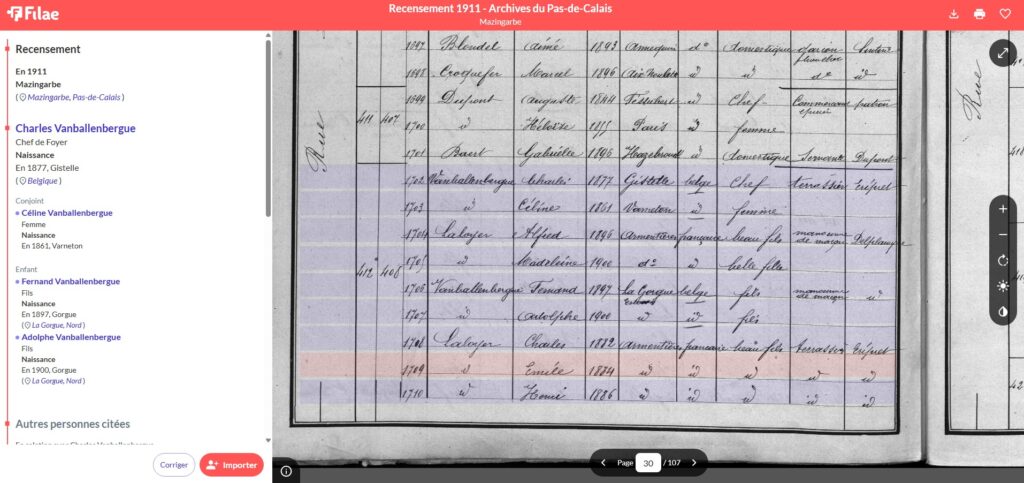 Ainsi pour un des enfants Henri né en 1887, il apparaît en plus de l’acte de naissance, un autre résultat, un recensement de 1911 dans un autre commune, Mazingarbe.