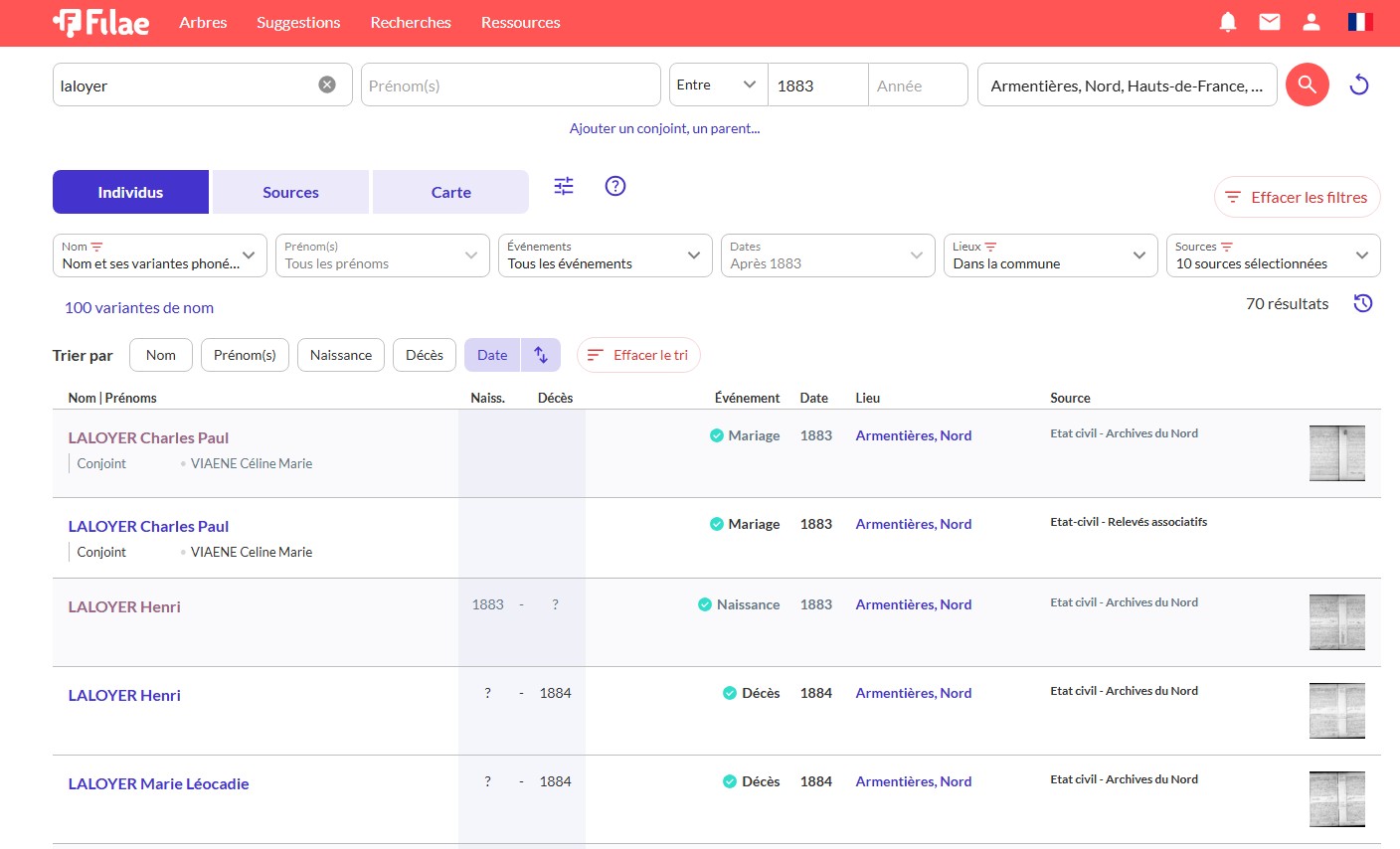 - Triez vos résultats par date pour suivre le fil de l’histoire familiale.