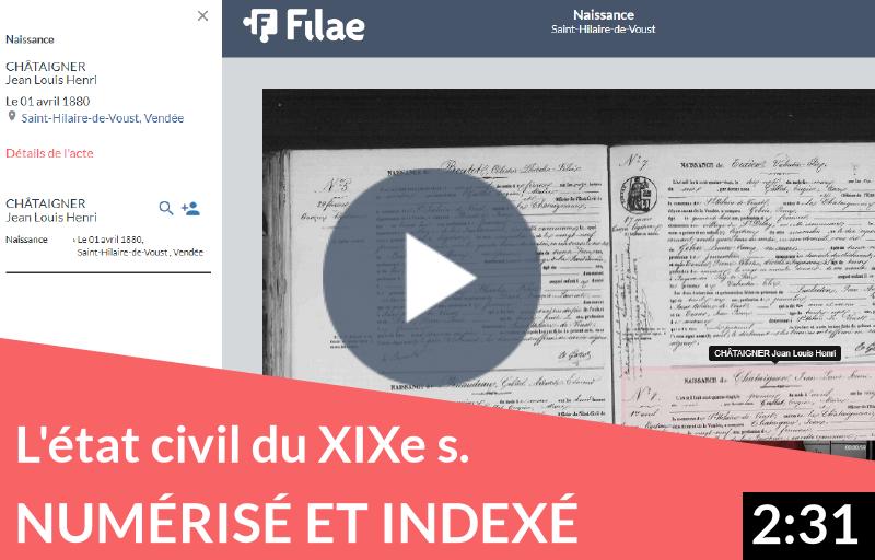 Grâce à Filae, retrouvez facilement un aïeul dans l’état civil du XIXe siècle et accédez immédiatement aux actes originaux. Démarrez vos recherches à partir d’un nom de famille et visualisez directement les actes de naissance, mariage et décès du XIXe siècle (100 millions de pages, 250 millions de personnes). Découvrez-le en vidéo ! Vous démarrez … Lire la suite