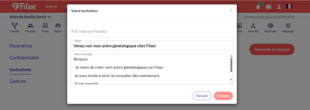 Les invitations : partagez votre arbre en ligne
