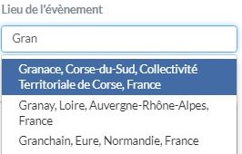 Remarquez qu’au fur et à mesure de la saisie des lieux, la ville apparaît. Il suffit de la sélectionner afin d’obtenir la localisation avec la commune, le département, la région et le pays. Pratique non ?