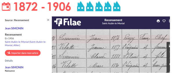 Vous accédez à la ligne des recensements de 1872 et 1906 de l’Allier très simplement, en effectuant des recherches nominatives comme pour l’état civil. Parfait pour enrichir son arbre d’informations !