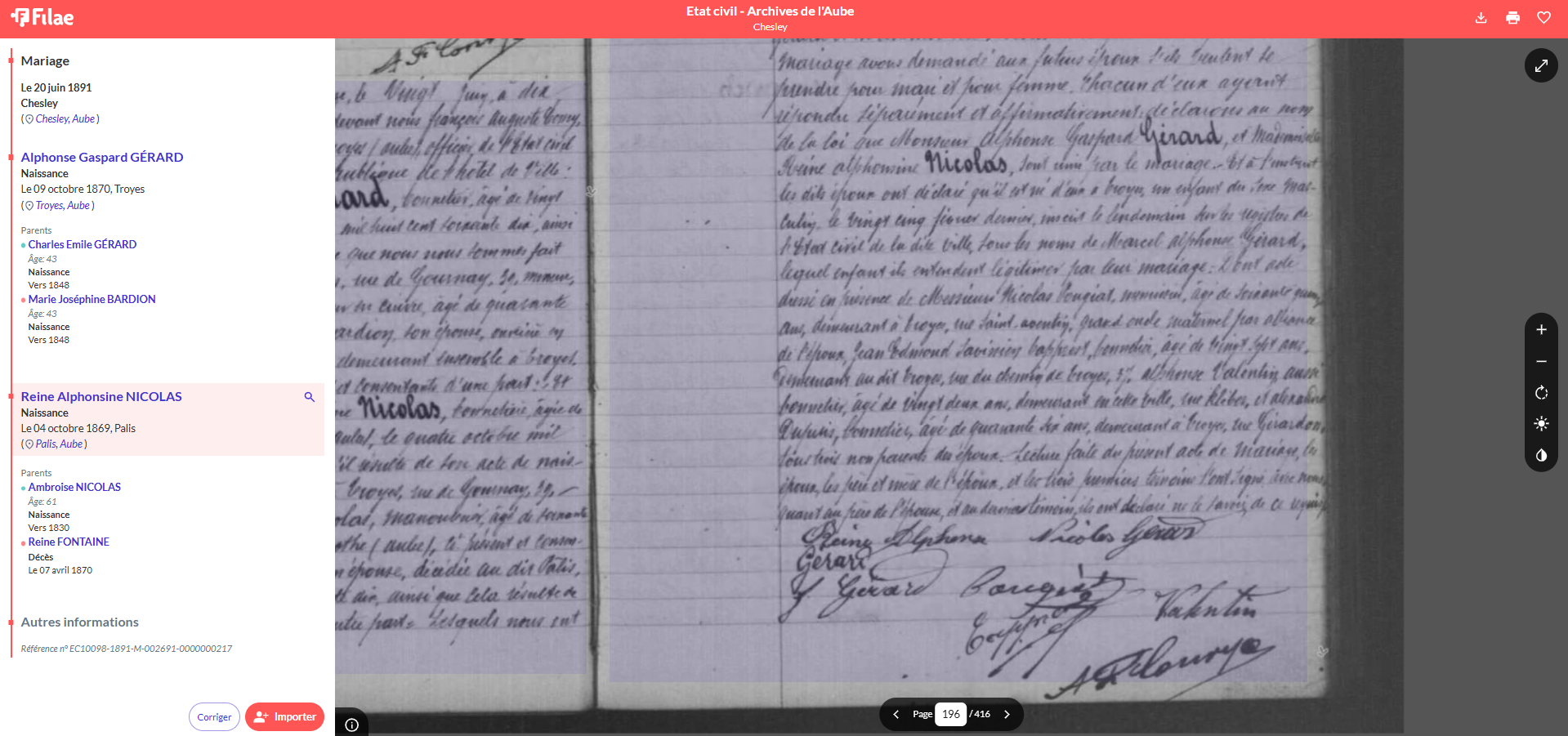 Direction l’Aube, où les actes d’état civil ont été enrichis de détails : parents, conjoints, âges… avec à la clef des résultats plus riches et plus précis.
