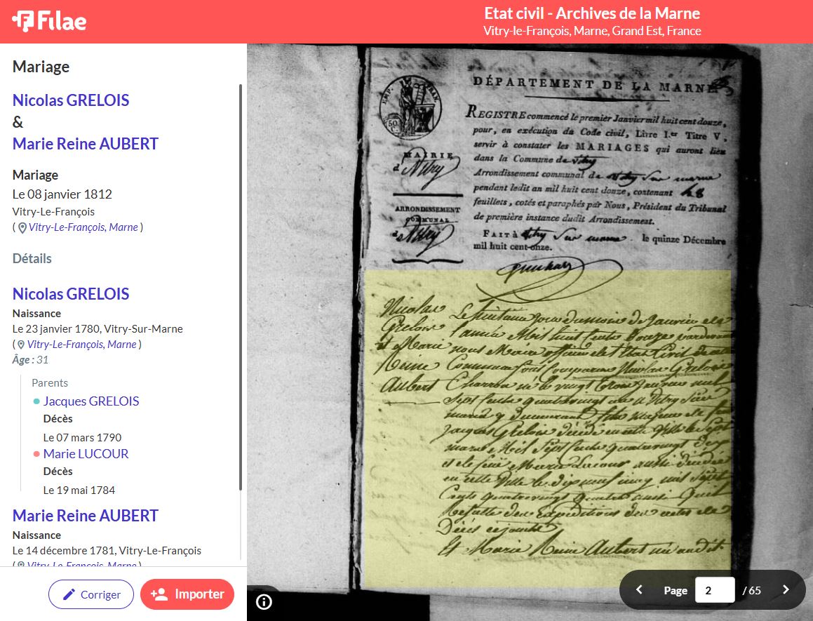 Après la Creuse, nous avons enrichi les indexations de l’état civil de la Marne en relisant les actes et en transcrivant des informations essentielles : parents, conjoints, âge, décès des parents dans les mariages, lieux de naissances…