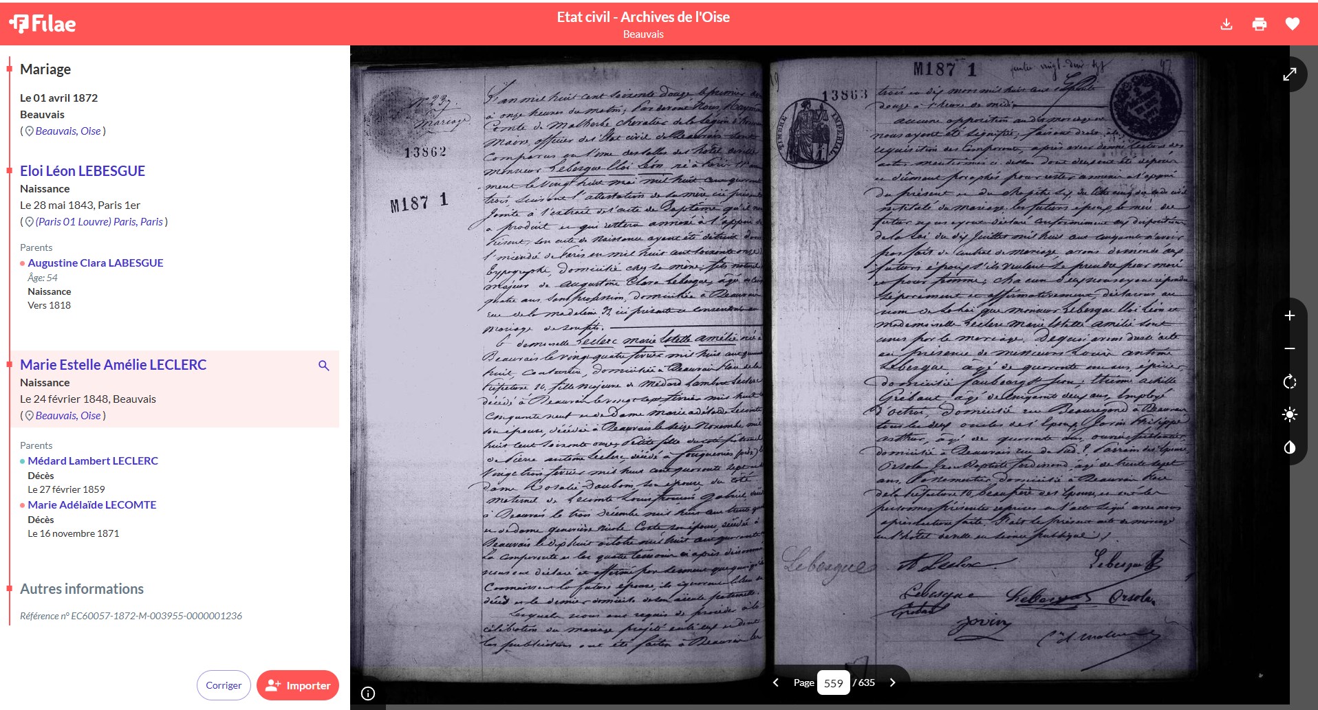Nous indiquons dans la FAQ les départements et villes où l’état civil est enrichi des parents et conjoints