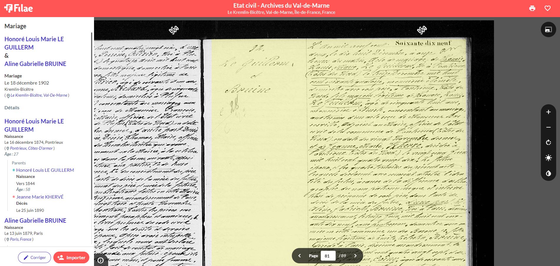 Les indexations de l’état civil du Val-de-Marne ont été enrichies des parents, conjoints, lieux d’origines, âges…