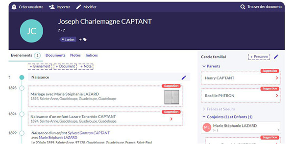 Cerise sur le gâteau, les indexations sont enrichies des parents et conjoints.