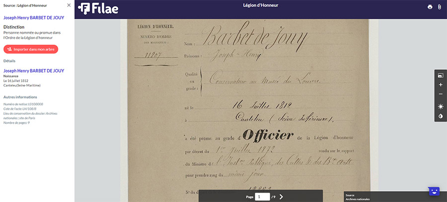 - Sa naissance le 16 juillet 1812, à Canteleu, grâce au dossier de la Légion d’honneur qui indique bien qu’il est conservateur au musée du Louvre. Il est promu officier de la Légion d’honneur le premier juillet 1872