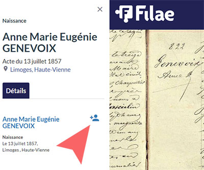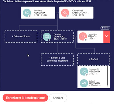 Quelques clics et vous ajoutez parents, enfants, conjoints, frères ou soeurs ! A vous bien sûr de bien lire les actes et d’exploiter tous les détails pour écrire votre histoire !