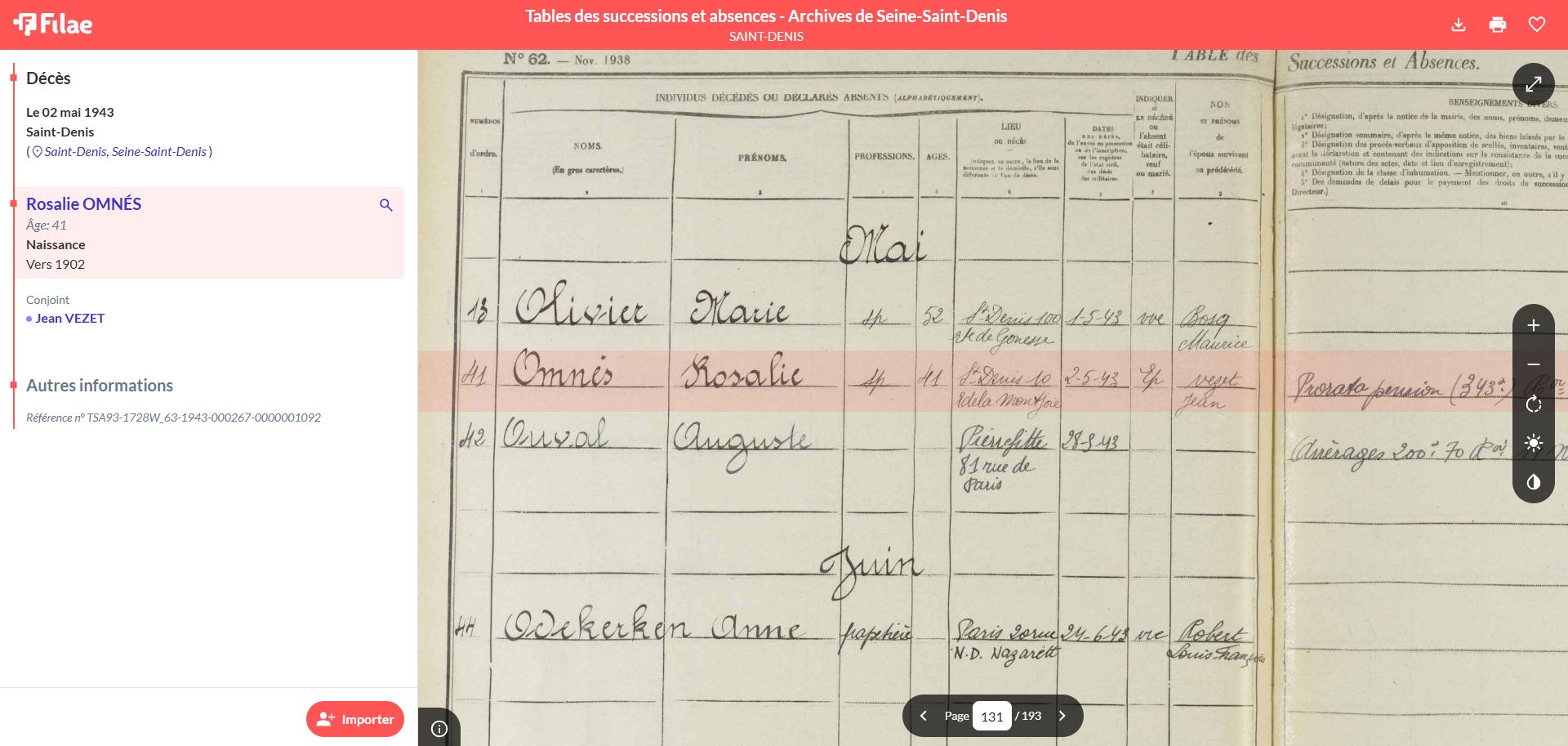 Bonne nouvelle pour vos recherches généalogiques ! 🎉 Les tables de successions et absences de la Seine-Saint-Denis (1900-1968) sont désormais en ligne sur Filae. Retrouvez plus de 793 000 individus, défunts et conjoints avec le nom, prénom, date et lieu de décès, résidence…
