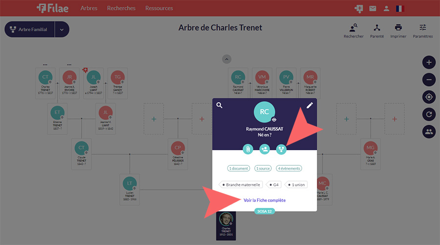 Découvrons comment naviguer de branche en branche et comment retrouver les fiches de vos ancêtres afin de les consulter et de les compléter.