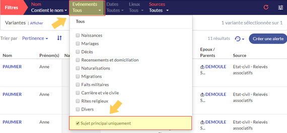 Cochez l’option « Sujet Principal uniquement » dans le filtre Evènements.