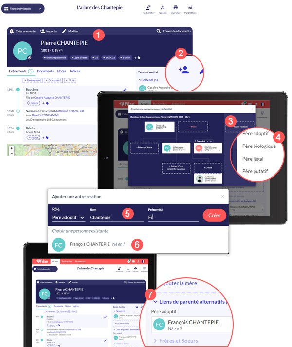 In your tree, go to the profile Family Tree - Enter biological parents, adoptive parents, tutors...- Click on the pencil icon on the right of "family circle"