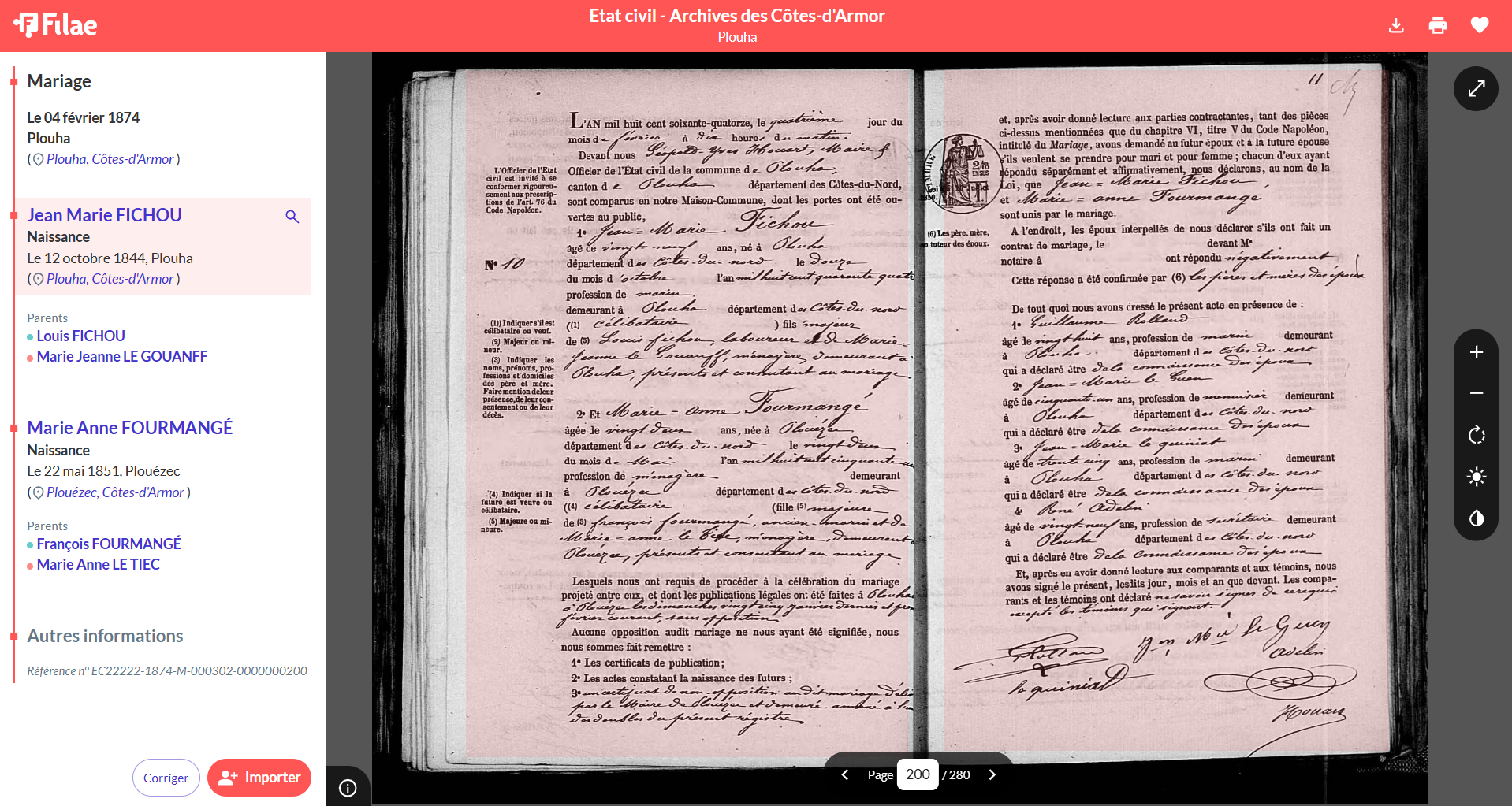 Grâce à la nouvelle saisie détaillée des actes, obtenez des réponses encore plus précises : parents, conjoints, date et lieu de naissance pour les mariages et décès, âge…