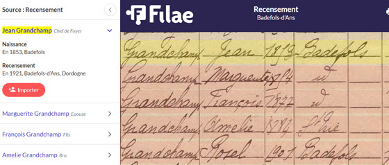 Filae a, pour chaque individu, transcrit noms, prénoms, années de naissance et a géolocalisé les lieux de résidence et de naissance. Le travail de Filae vous permettra également de rapidement identifier :