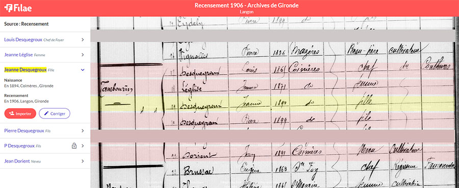 Les premiers recensements de la Gironde apparaissent sur Filae ! L’équipe a transcrit chaque personne recensée en 1906, 1911 et 1921 ! A vous maintenant de partir à la recherche de votre famille.