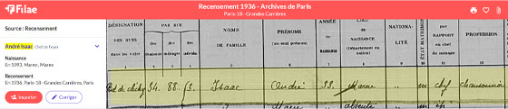 Si on recherche le célèbre humoriste et comédien Pierre Dac, né André Isaac dans la Marne, nous voyons immédiatement dans les résultats qu’il réside à Paris en 1926 et 1936. Il est alors indiqué chansonnier.