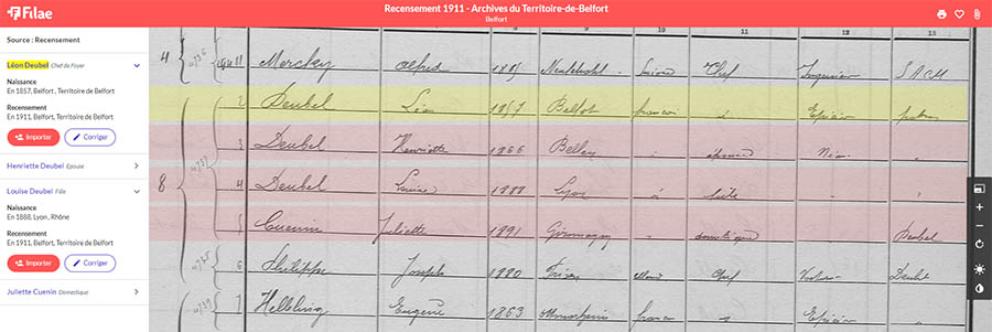 Nouveau : les recensements du Territoire de BelfortYann2023-05-12T15:57:58+01:00 Les indexations des recensements du Territoire de Belfort s’enrichissent de nouvelles années. Après 1872 et 1906, les années 1911, 1921 et 1931 sont disponibles. Explorer les recensements Recensement de Belfort de 1911