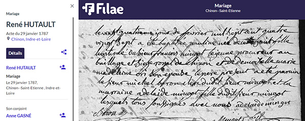 L'équipe de Filae ne cesse d'indexer les registres paroissiaux numérisés. Ce travail de titan facilite vos recherches puisqu'un clic suffit pour accéder à l'acte ! A vous ensuite de lire toutes les informations pour étoffer votre généalogie.