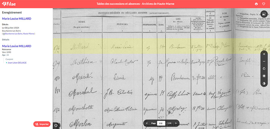 Lancez vos recherches immédiatement dans les tables de successions et absences de la Haute-Marne entre 1900 et 1968 soit plus de 568 000 individus.