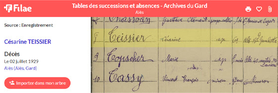 Vos recherches dans le Gard bénéficient maintenant de nouvelles indexations d’archives afin de retrouver des décès et des successions. Explorez dès maintenant les tables de successions et absences du département entre 1893 et 1969.