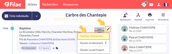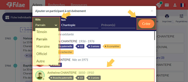 Ajoutez dès maintenant les participants aux événements dans votre arbre.