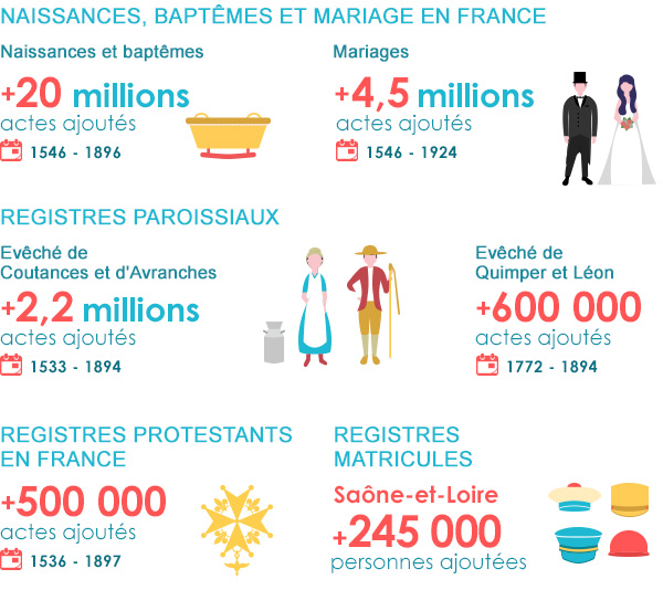 Nouveaux relevés : 28 millions d’événements ajoutésGéraldine2021-01-05T16:19:55+01:00 Après l’importante mise à jour du 6 juillet, retrouvez dès maintenant des nouveaux relevés d’actes ! Lancer des recherches LES DERNIERES ARCHIVES NUMERISEES Une recherche nominative suffit pour accéder aux actes ! Lancer des recherches Vidéos les plus vuesJean-Louis Beaucarnot « Le recensement de 1906 sur Filae, c’est génial » Pourquoi l’offre Premium est-elle payante ? L’état civil numérisé et indexé du XIXe siècle Créer son arbre généalogique Tout savoir sur les filtres pour optimiser ses recherches