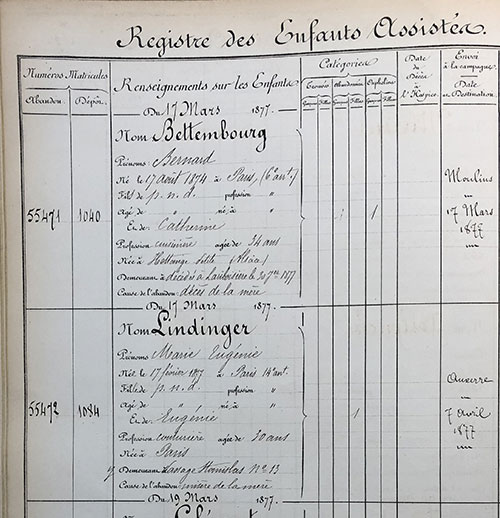 - Les registres d’admission et les dossiers individuels apportent de nombreuses informations sur l’abandon mais aussi toute l’enfance du pupille.