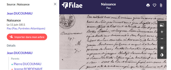 L'état civil de Pau enrichi des parents et conjoints