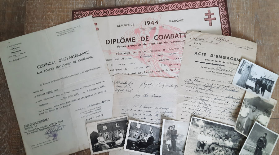 Dans un premier temps, explorer les archives familiales peut révéler de belles surprises avec des photos, des courriers, et des documents officiels datant de la guerre ou de l’après guerre comme un diplôme de combattant. Toutes ces archives fournissent déjà des renseignements et des pistes pour partir à la recherche de membres de votre famille durant la Seconde Guerre mondiale. N’hésitez donc pas à fouiller dans les tiroirs et les malles ou à demander à vos proches s’ils n’ont pas des papiers et des photos.