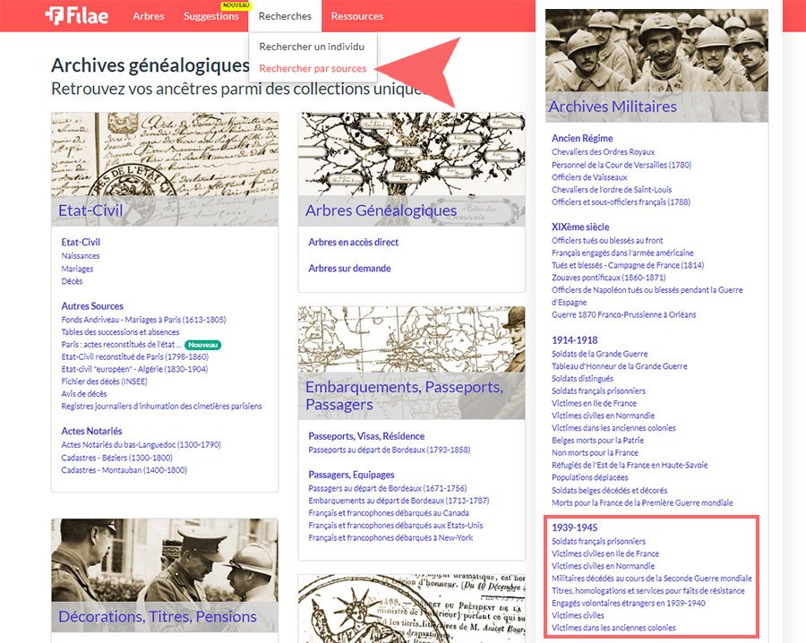 Quelles archives consulter pour retrouver un soldat ou un civil durant la Seconde Guerre mondiale ? Que propose Filae ? Nous vous expliquons tout en détail.