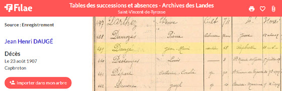 Partez dès maintenant à la recherche des décès et de successions dans les Landes. Les tables de successions et absences sont indexées de 1892 à 1970 !