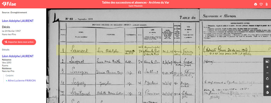Après la Haute-Vienne, nous avons indexé des tables de successions et absences du Var. Avec ces nouvelles archives numérisées, la recherche d’un décès est facilitée tout en ouvrant des perspectives de recherche sur les successions.